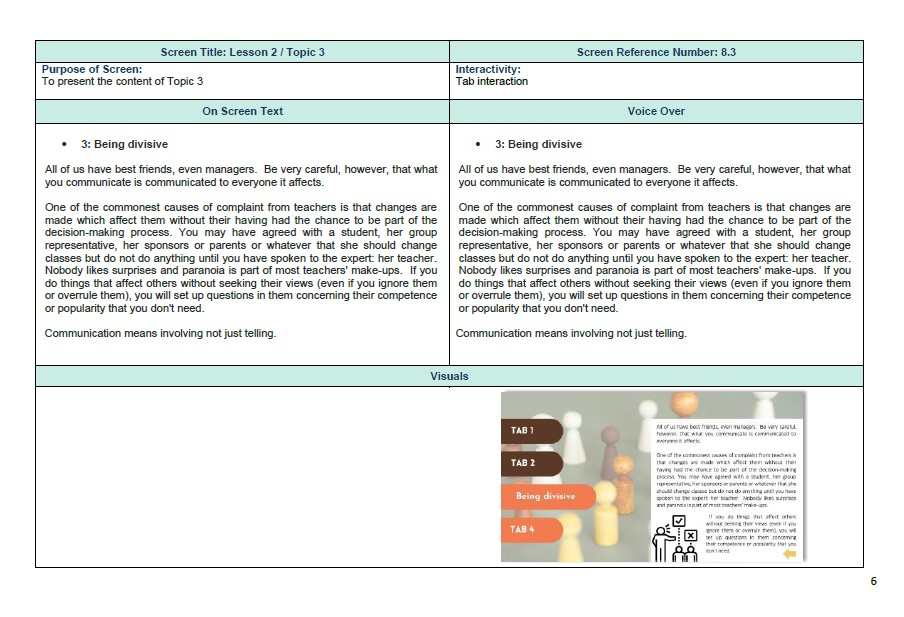 I prepared a project scoping plan, a wireframe, a screenplan and a storyboard, as well as a project report for the successful completion of my instructional design certificate program at DLI.