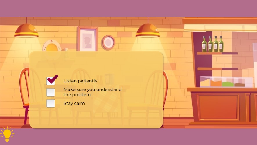 This is a sample course aimed at helping restaurant servers identify and resolve customer complaints.